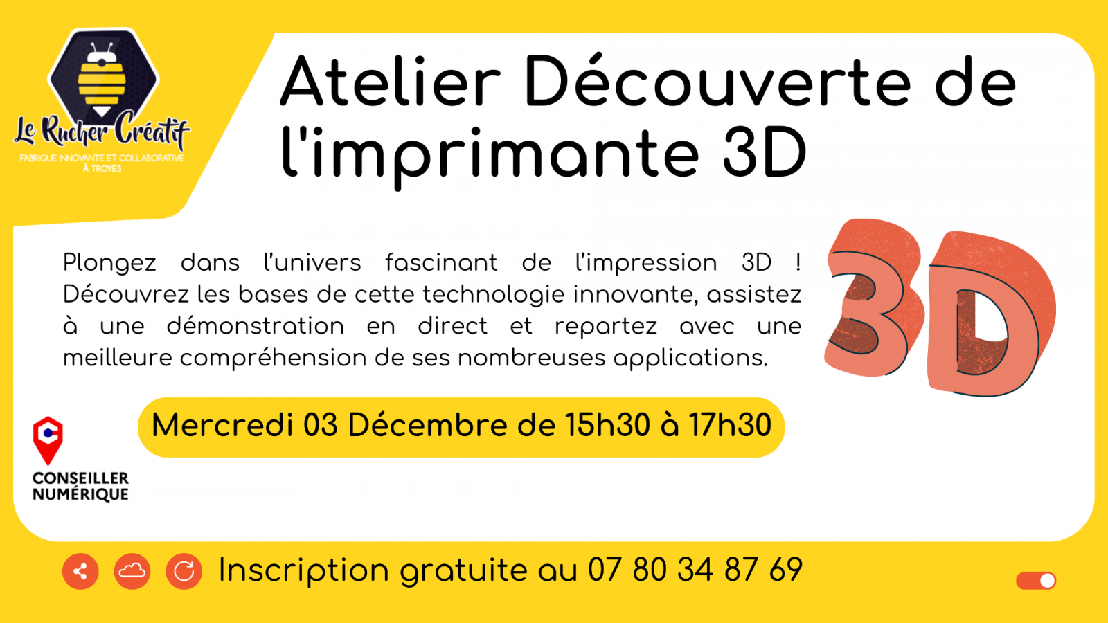 About Opening Rate Services Return to list About Languages French Opening 03 December 2025DaysHoursWednesday 15h30 to 17h30 Rate Gratuit Services Types Accompanied Introductory/discovery Cultural activities Computer Discovery Technology/Electronics
