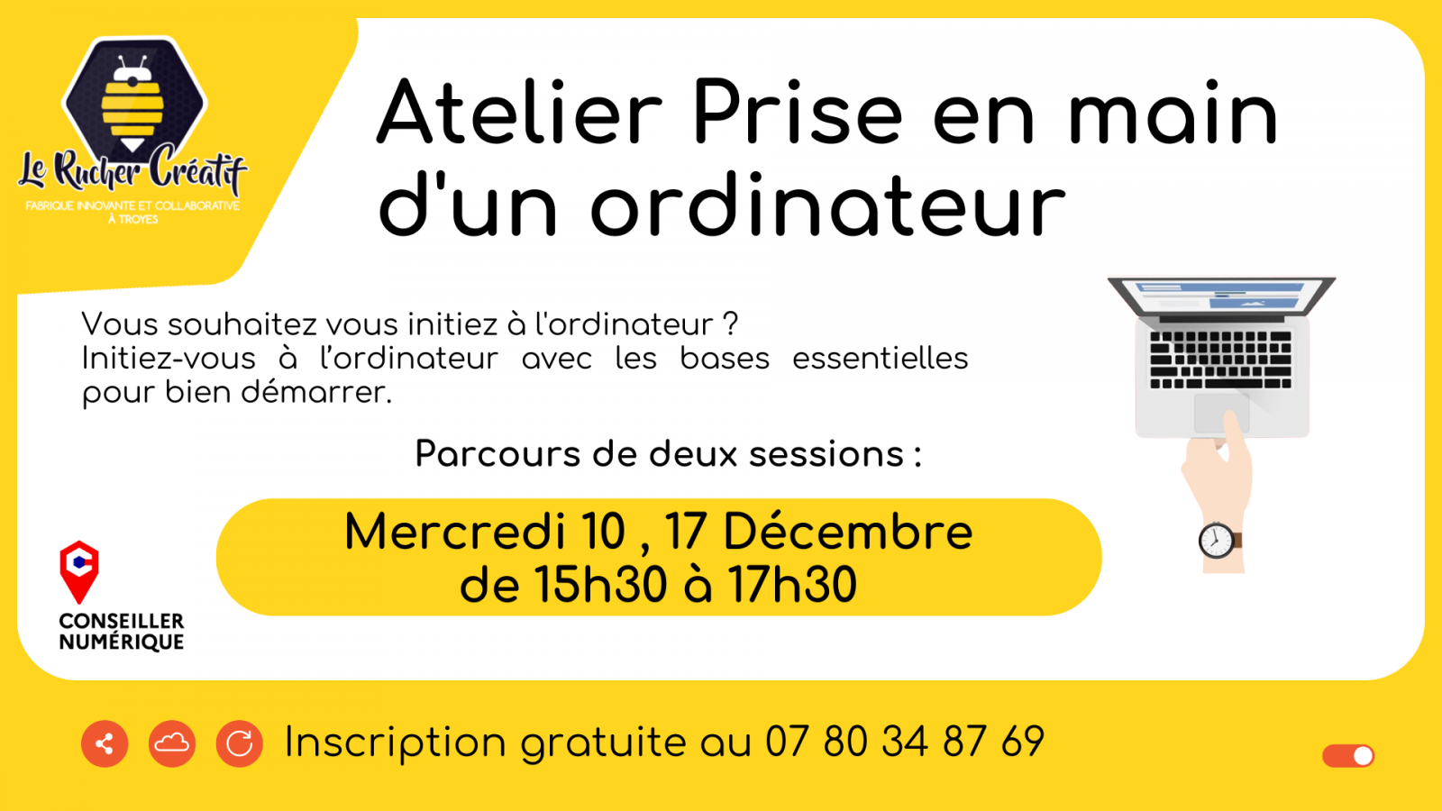 Opening Rate Services Return to list Opening 10 December 2025DaysHoursWednesday 15h30 to 17h3017 December 2025DaysHoursWednesday 15h30 to 17h30 Rate Gratuit Services Cultural activities Computer Discovery