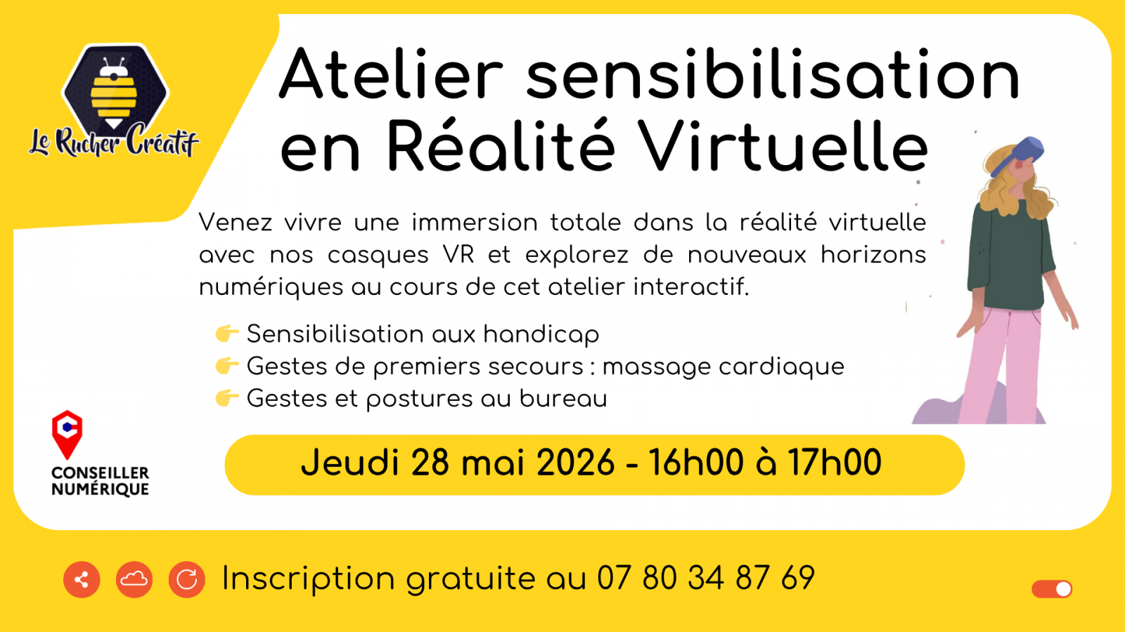 Opening Rate Services Return to list Opening 28 May 2026DaysHoursThursday 16h00 to 17h00 Rate Gratuit Services Types Accompanied Introductory/discovery Cultural activities Discovery Virtual reality