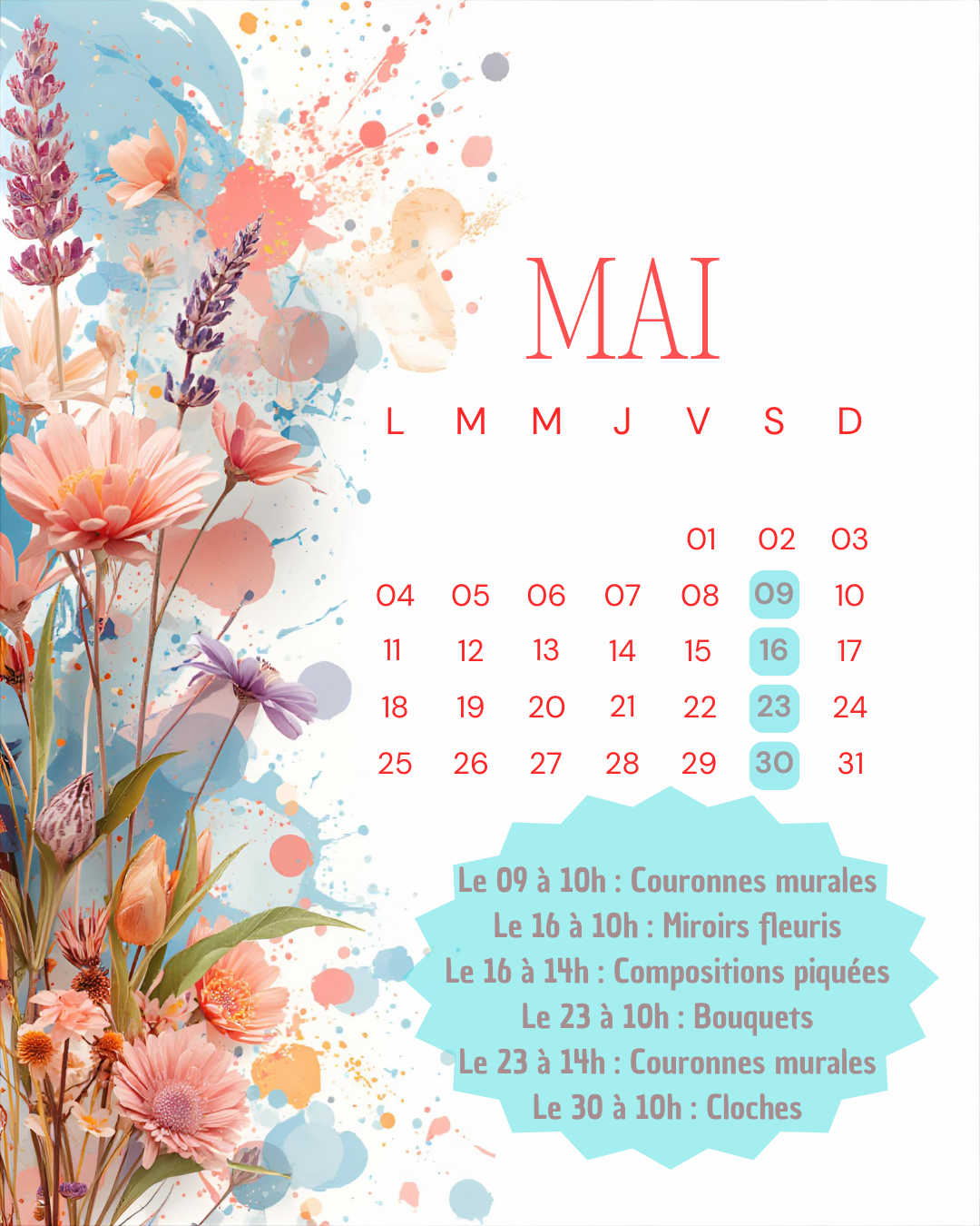| Saturday | 10h00 to 11h30 |