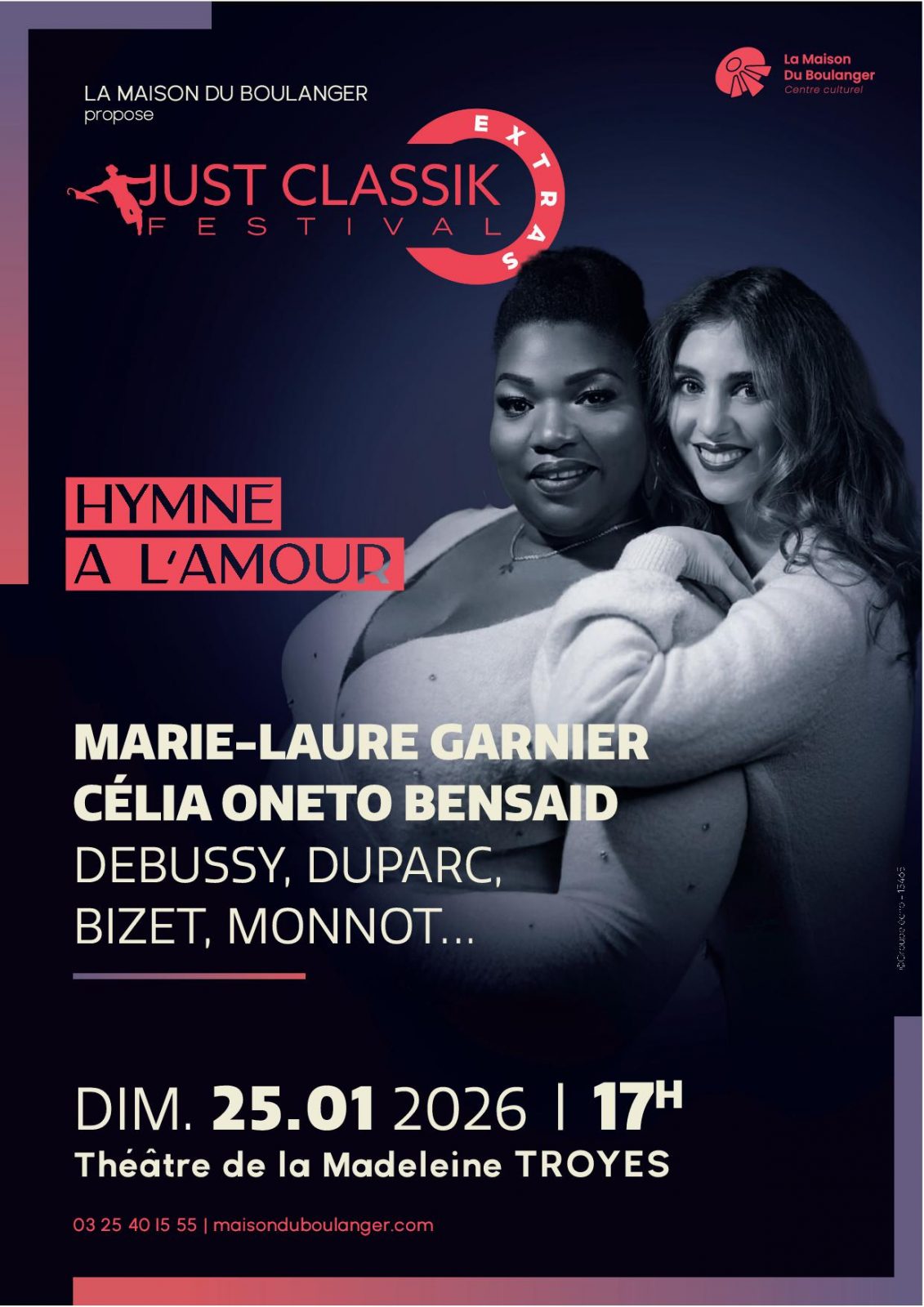 25 Jan 2026 Rue Jules Lebocey, 10000 Troyes Consult the timetable Date Rate Services Situation Nearby Return to list Date 25 January 2026DaysHoursSundayAt 17h00 Rate Rate Min. Max. Full price Min: 25€ Max: 25€ Reduced price Min: 8€ Max: 8€ One price Min: 40€ Max: 40€ One price : 40 € Payment Check Cash Bank/credit card Culture voucher Connect Travellers Cheque Services Equipments Parking nearby Situation