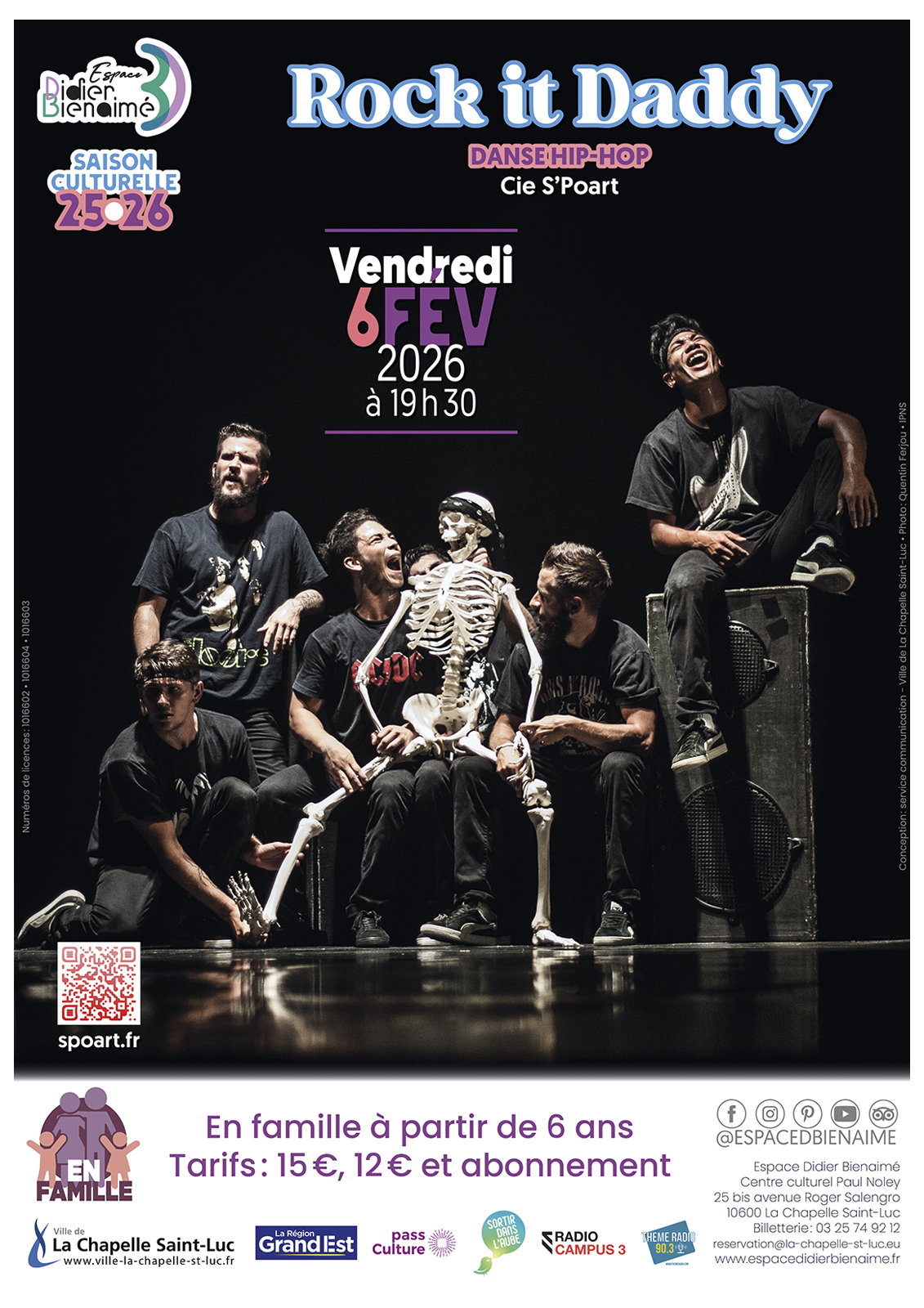 06 Feb 2026 25 bis avenue Roger Salengro, 10600 La Chapelle-Saint-Luc Consult the timetable Multimedia Date Rate Services Situation Nearby Return to list Multimedia Date 06 February 2026DaysHoursFridayAt 19h30 Rate Rate Min. Max. Full price Min: 15€ Max: 15€ Reduced price Min: 12€ Max: 12€ Reduced price : 12 € Payment Check Cash Culture Pass Bank/credit card Services Equipments Free car park Car park Situation 2