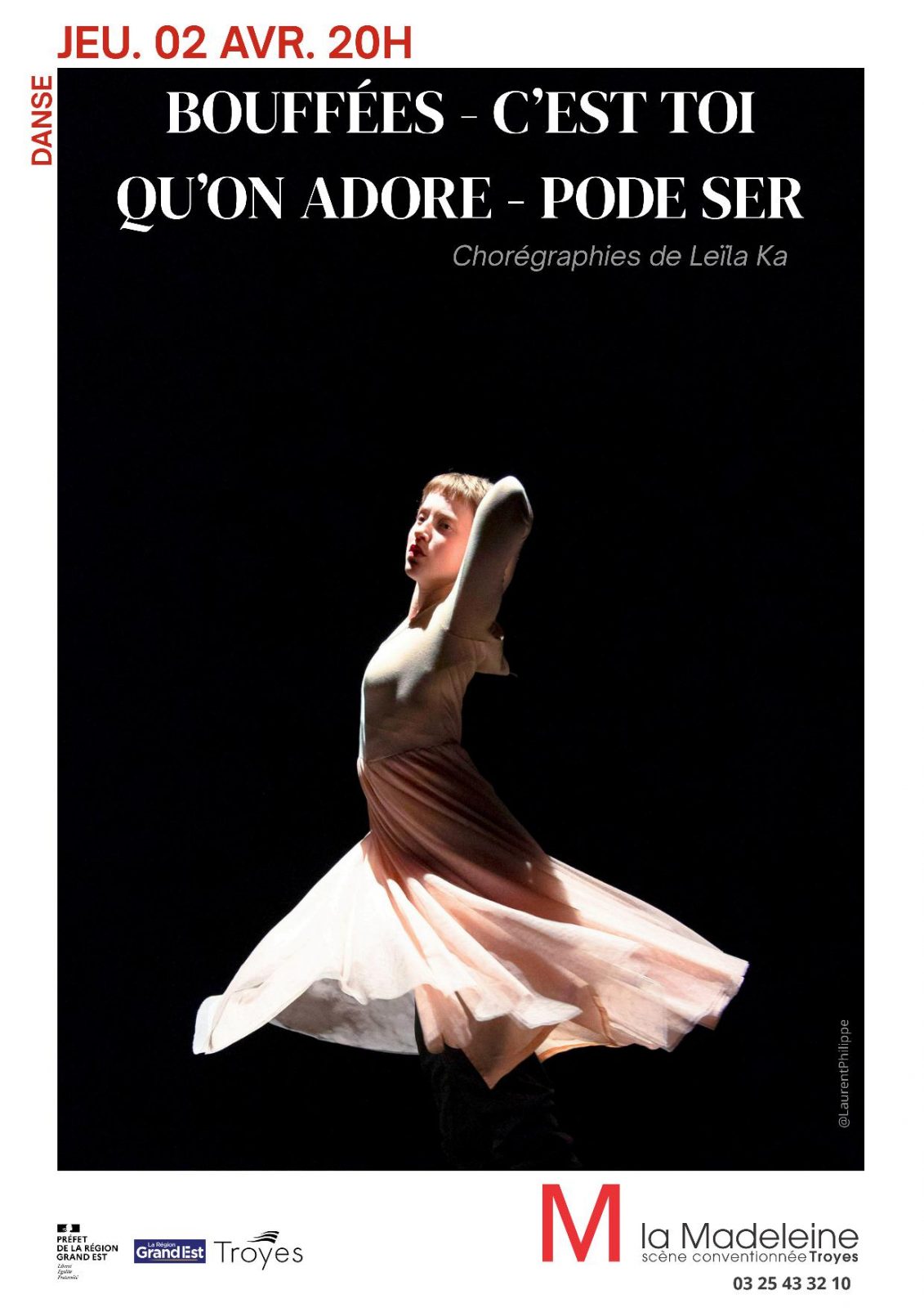 02 Apr 2026 Rue Jules Lebocey, 10000 Troyes Consult the timetable Date Rate Situation Nearby Return to list Date 02 April 2026DaysHoursThursdayAt 20h00 Rate Rate Min. Max. Full price Min: 18,20€ Max: 18,20€ Reduced price Min: 15,20€ Max: 15,20€ Teenager Min: 8,20€ Max: 8,20€ Child Min: 6,20€ Max: 6,20€ One price Min: 6,70€ Max: 6,70€ One price : 6,70 € Situation 3