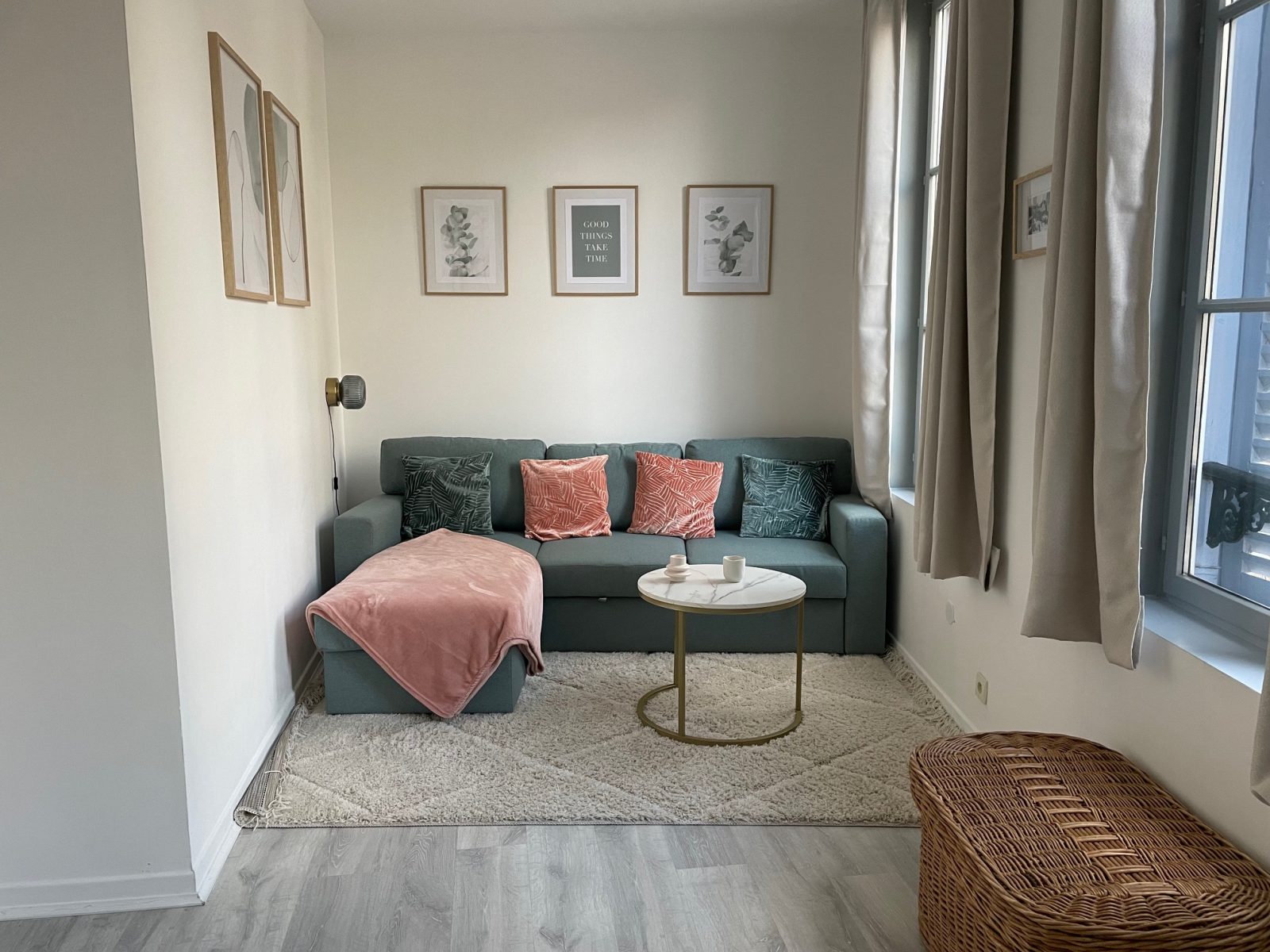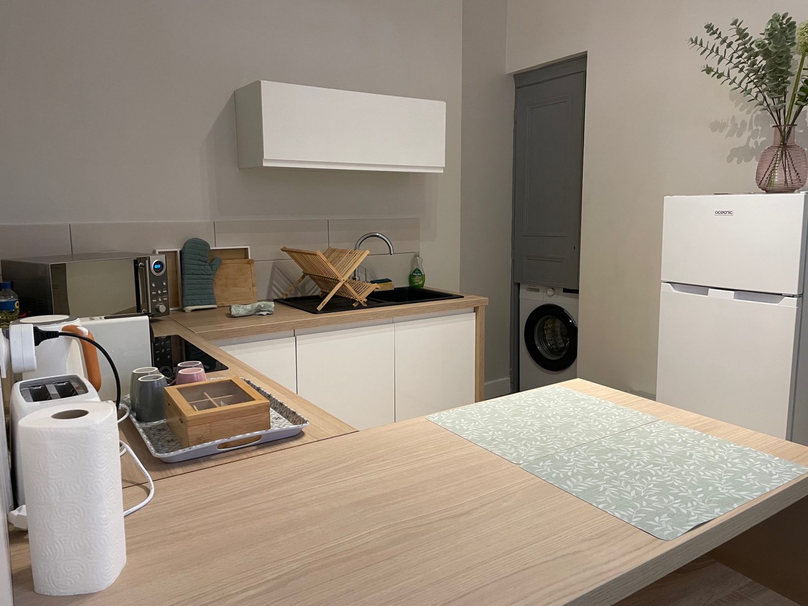 The apartment is located on the second floor of a building typical of local architecture, with a breathtaking view of the Eglise Saint-Remy. You'll enjoy a spacious bedroom with quality Queen Size bedding, a large independent kitchen for preparing your meals, and a spacious living room for dining. In the living room, you can watch TV (Molotov TV) from the corner sofa. At night, the sofa becomes a second bed (IKEA 160 cm sofa). The bathroom features a vanity unit, shower and toilet. A washing machine is also available, as is a cot for toddlers. Free wifi access is available throughout the apartment.