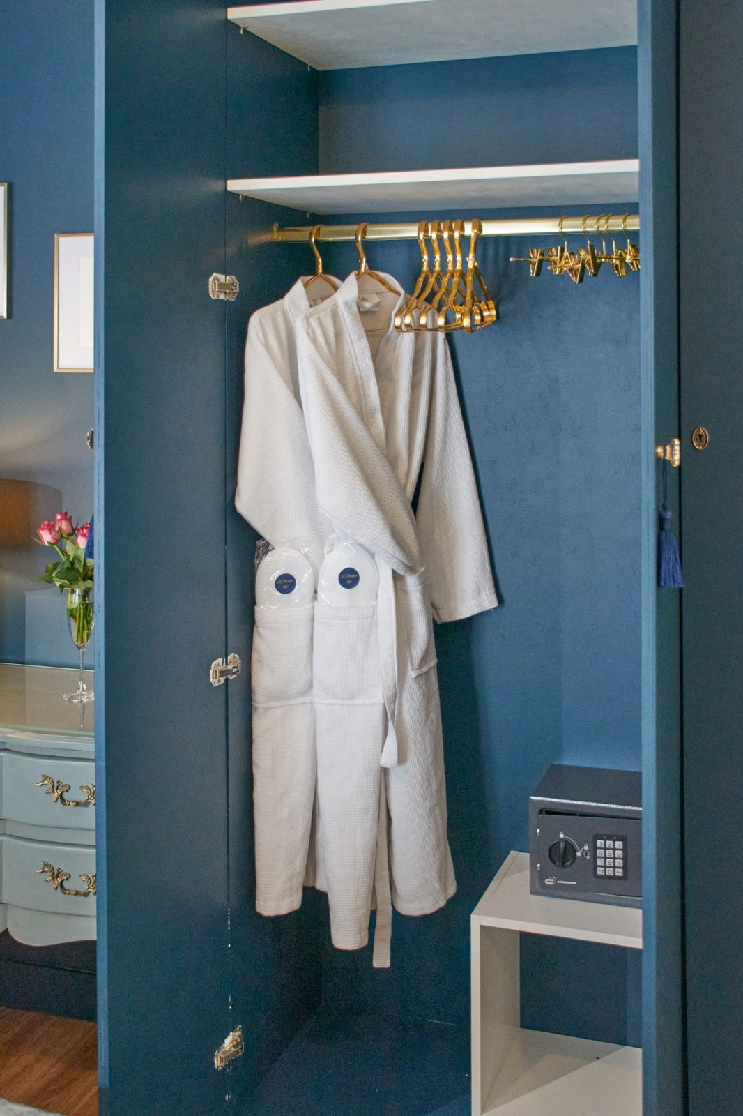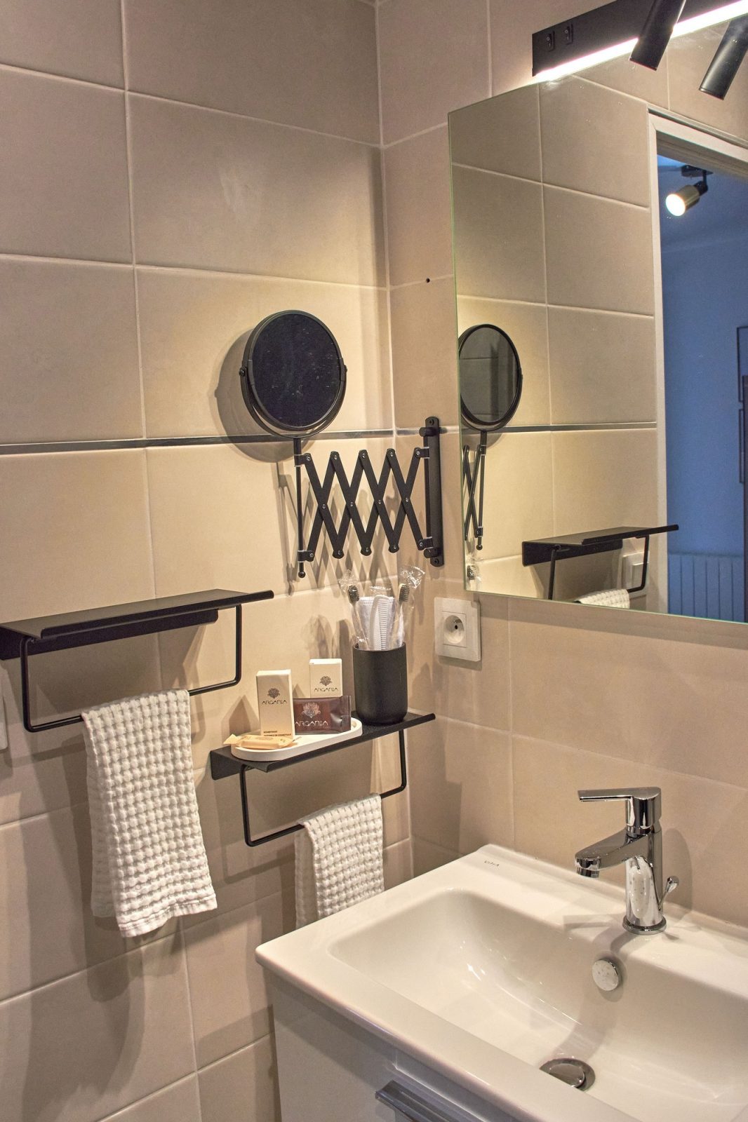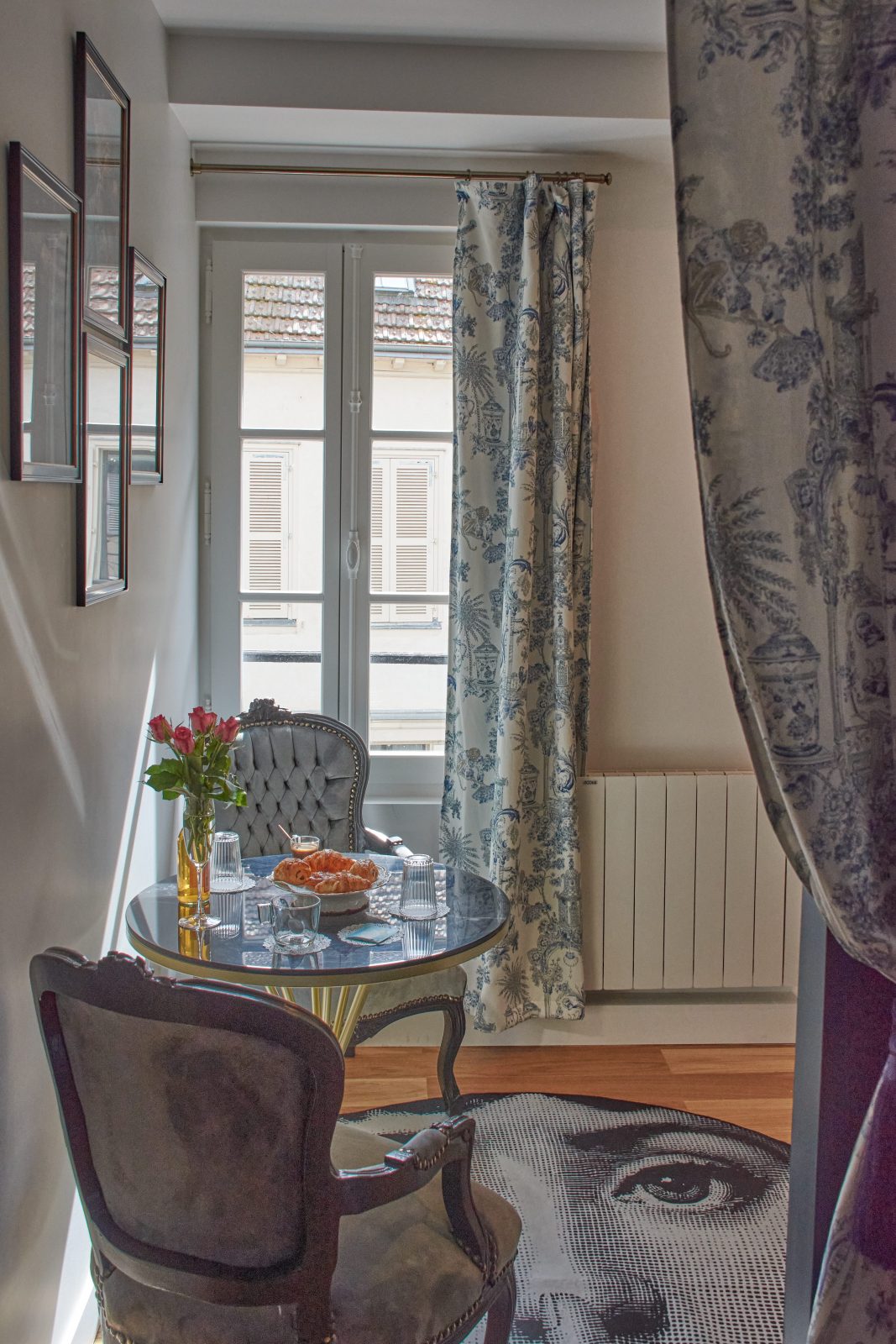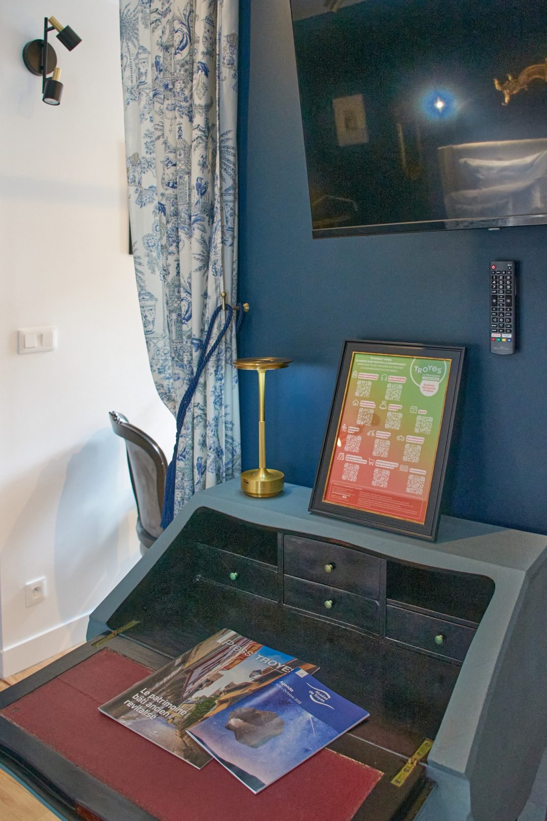 With its authentic 18th-century decor and toile de Jouy curtains, it offers absolute peace and quiet overlooking a pretty garden, right in the heart of the historic center. Designed and maintained with the environment in mind, you'll find organic teas, coffees, fruit juices and sweet and savory snacks, plus mineral water in the fridge. The bathroom is fitted with organic honeycomb towels, and organic courtesy products include shower gel, shampoo and conditioner, body lotion, beauty kit, sewing kit, shower caps, hand wash and soap, comb, toothbrush and toothpaste.
