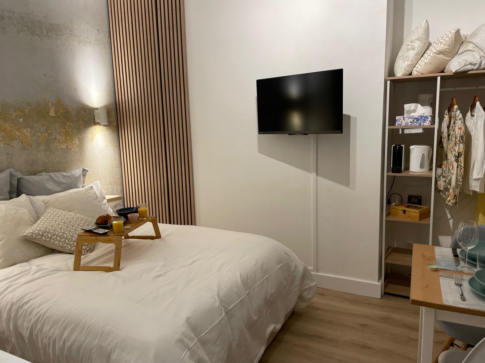 The studio is located in a building typical of the local architecture and you will be charmed by the Trojan heritage. The windows overlook the building's inner courtyard. You'll sleep in a comfortable double bed, with TV, Molotov TV and wifi internet access. You can prepare your meals in the elegant kitchenette and enjoy them on the dining table.