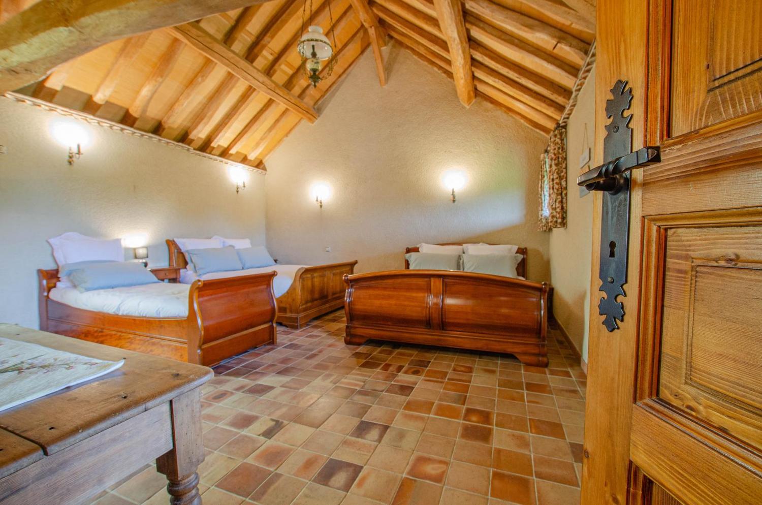 Upstairs, you'll find a triple bedroom (bed 140×190 + bed 90×190), a twin bedroom (2 beds 90×190) and a family room (bed 140×200, bed 160×200 and bed 90×190) equipped with a TV. You'll also benefit from a mezzanine fitted out as a relaxation lounge with sofa and TV, a children's play area, a bathroom (bath + double basin) and separate WC with washbasin.