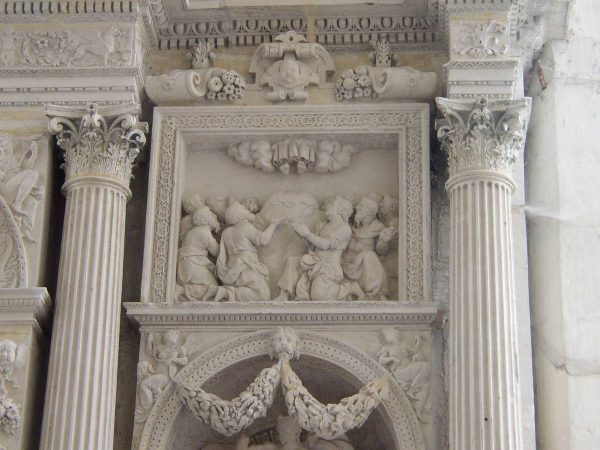 For example, an oak reredos showing the life of St Nicholas dating from the 16th century and assembled in the 19th century, the 16th-century limestone high altar with a profusion of details that match the quality of their execution with the overall design, and also a very fine polychrome limestone sculpture of Sainte Marguerite. The latter was exhibited at the exhibition ‘Le Beau XVIe: masterpieces of sculpture in Champagne’ which was held in 2009 at the church of Saint-Jean-au-Marché in Troyes.