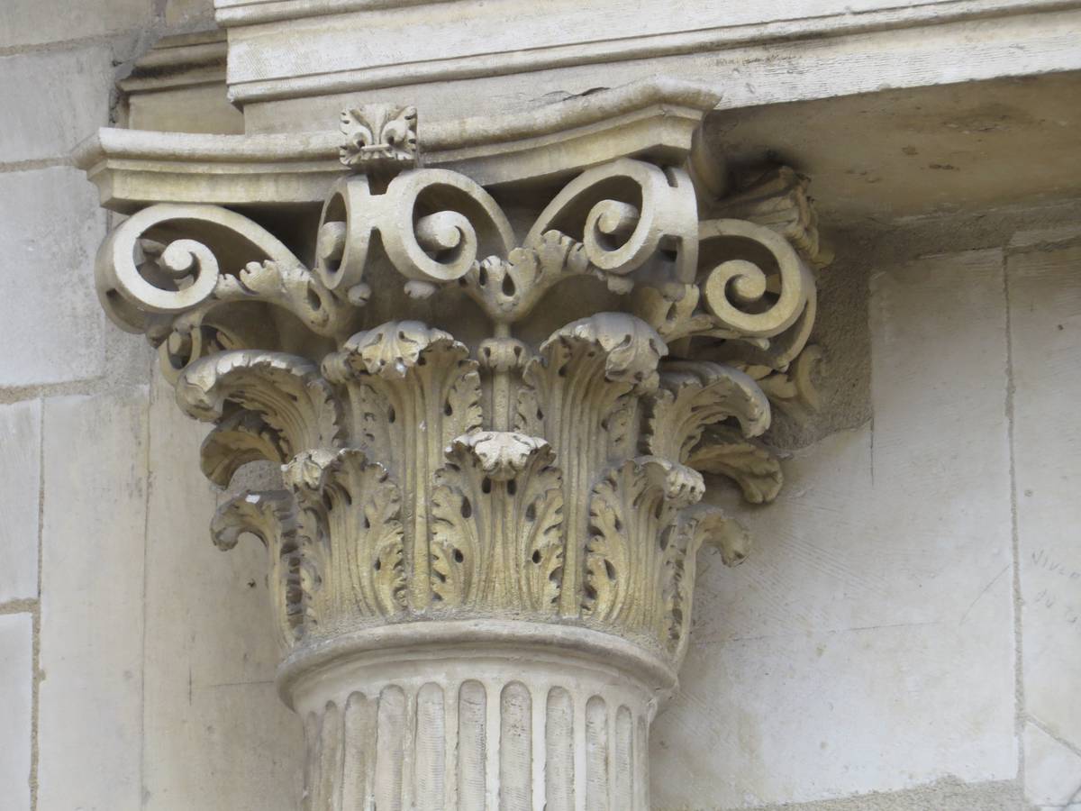 It has two arches that are framed by fluted columns with Corinthian capitals and a curved pediment, which is divided into two sections leaving space in the middle for a 14th-century statue of the Virgin Mary. The whole demonstrates the integration of 17th-century Greco-Roman influences – known as ‘classical style’ – into a religious building that was built a century earlier.