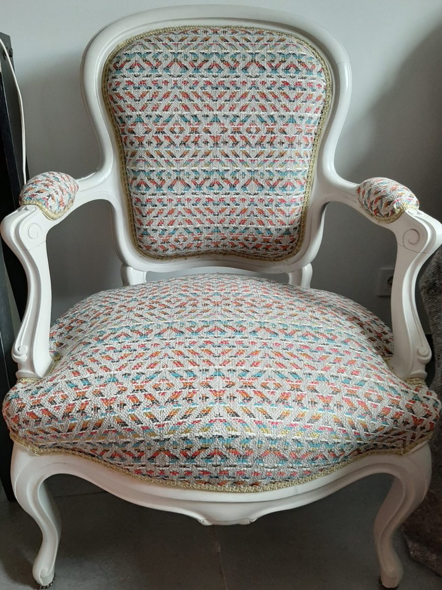 After being drawn to her vocation through her passion for antiques and second-hand items, she was trained in the techniques of caning and tapestry by professionals.