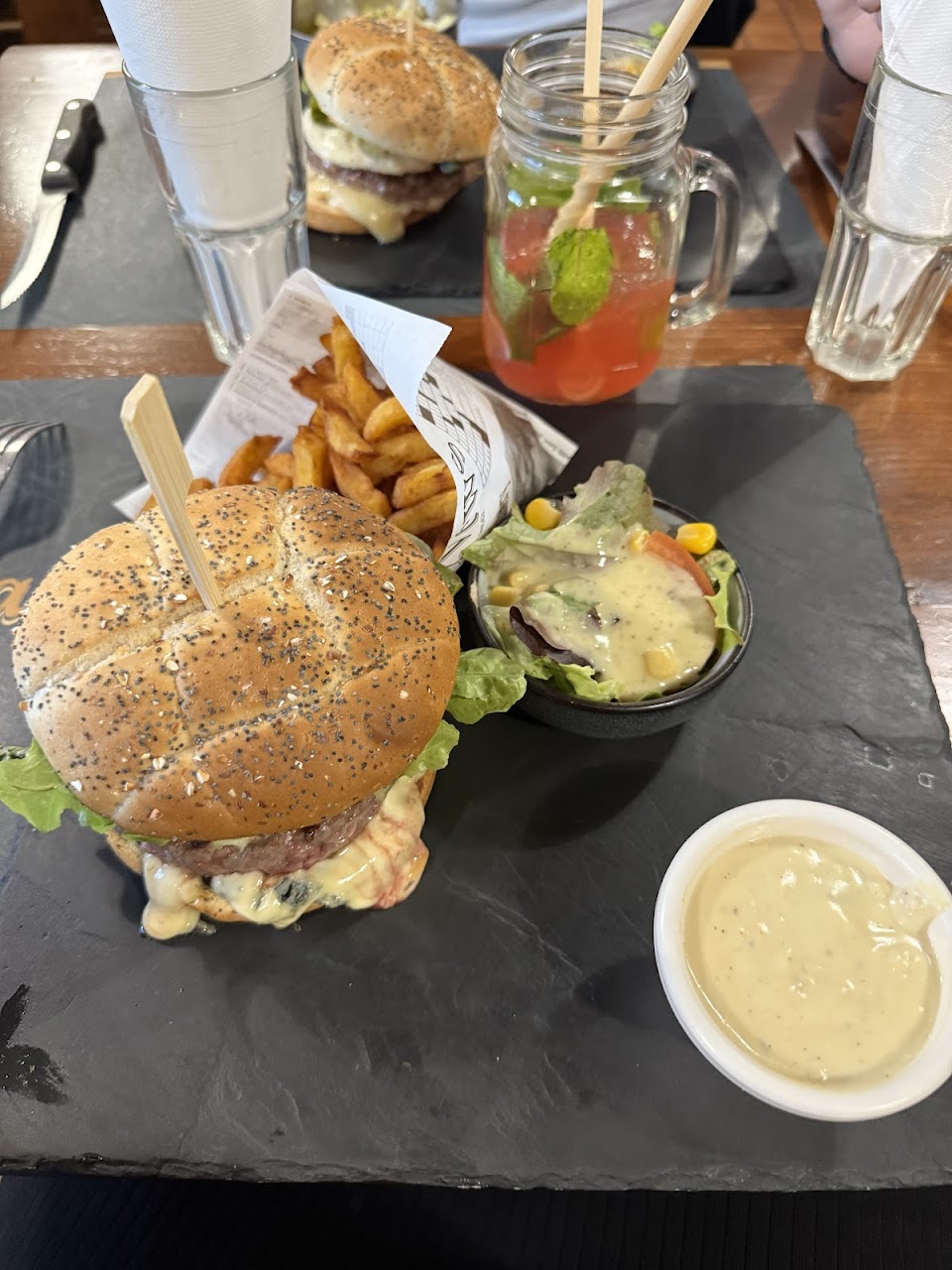 Its warm and friendly decor (Jeantou's stable, the cheese cellar, François' kitchen, Marie's bedroom, the garage) and its creative traditional Auvergne cuisine are all homemade. The menu includes Menus, Salads, Truffade, Pounti, Tripoux, Brasserie dishes, Farinettes (crêpes), burgers, VBF grills, fresh chips and homemade desserts.